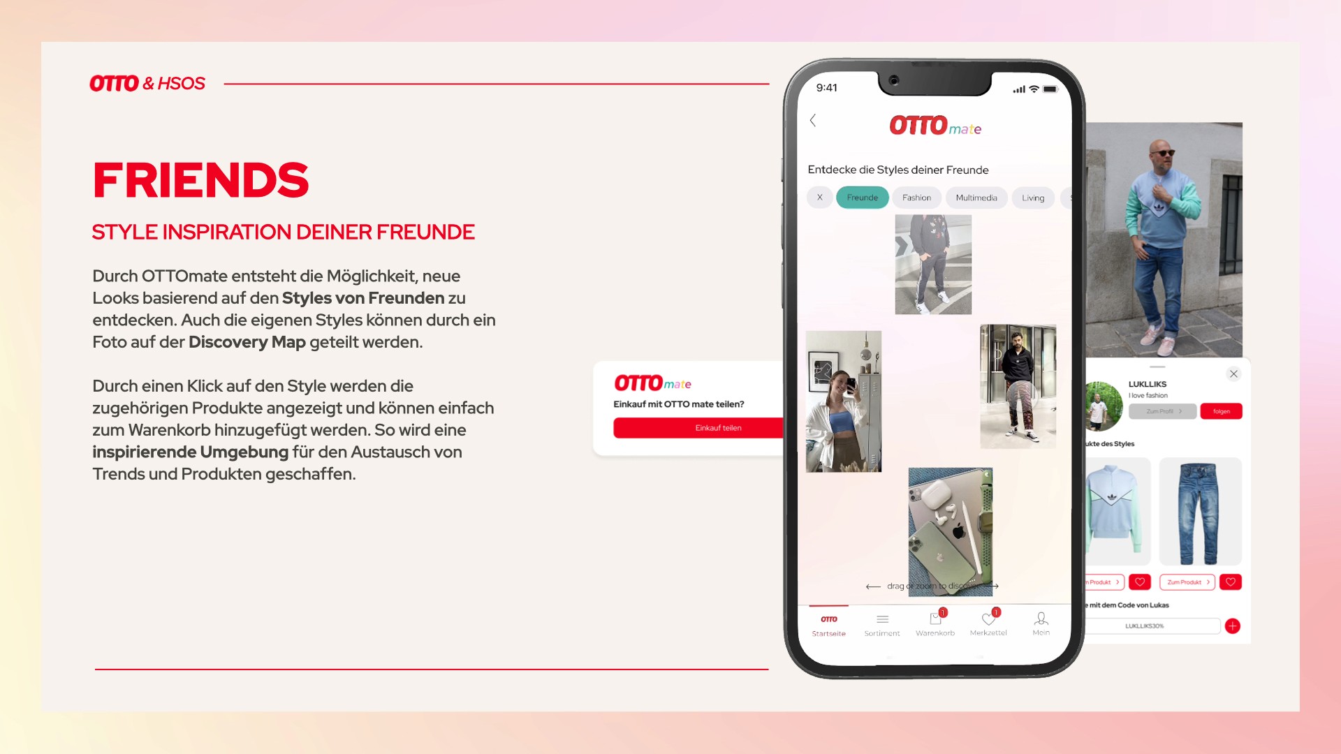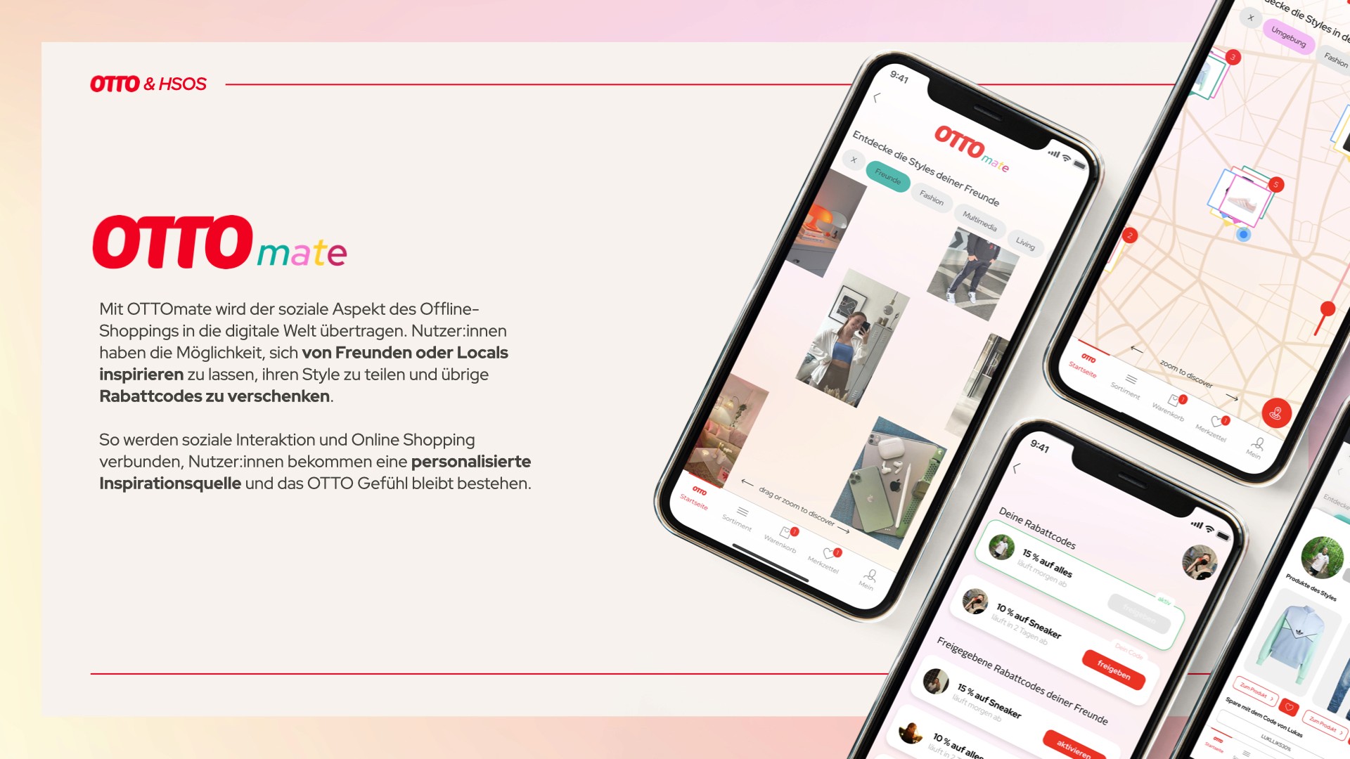 OTTO mate ist ein UX-Konzept für die OTTO App, das Online-Shopping um soziale Interaktionen erweitert. Ziel war es, das Einkaufserlebnis persönlicher zu gestalten und Nutzer*innen stärker emotional an die Plattform zu binden.