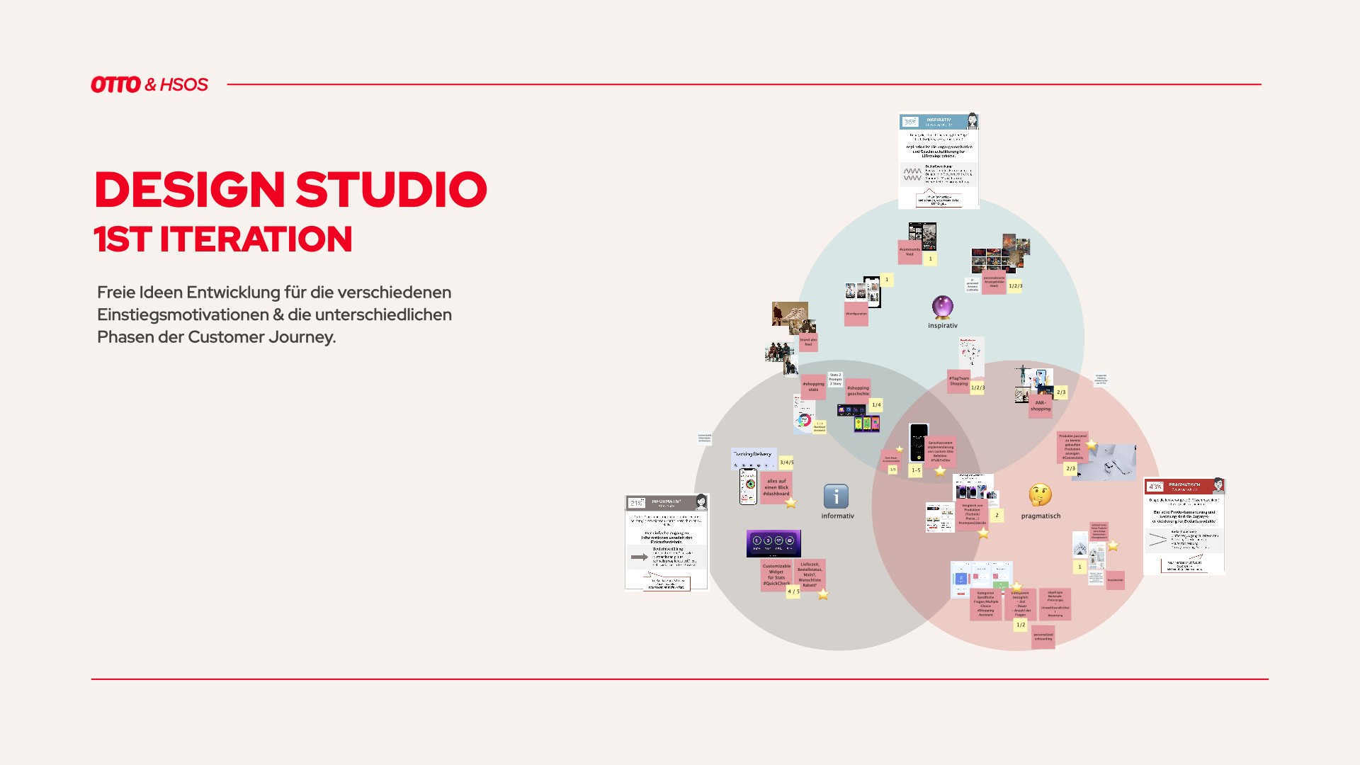 Im Design-Studio-Prozess starteten wir damit, die Nutzer*innen von OTTO besser kennenzulernen. Wir analysierten unterschiedliche Nutzungsbedingungen und Gründe für die App-Nutzung. Wie, Wann und warum nutzen Menschen die OTTO Plattform? Diese Erkenntnisse bildeten die Grundlage für alle weiteren Schritte.